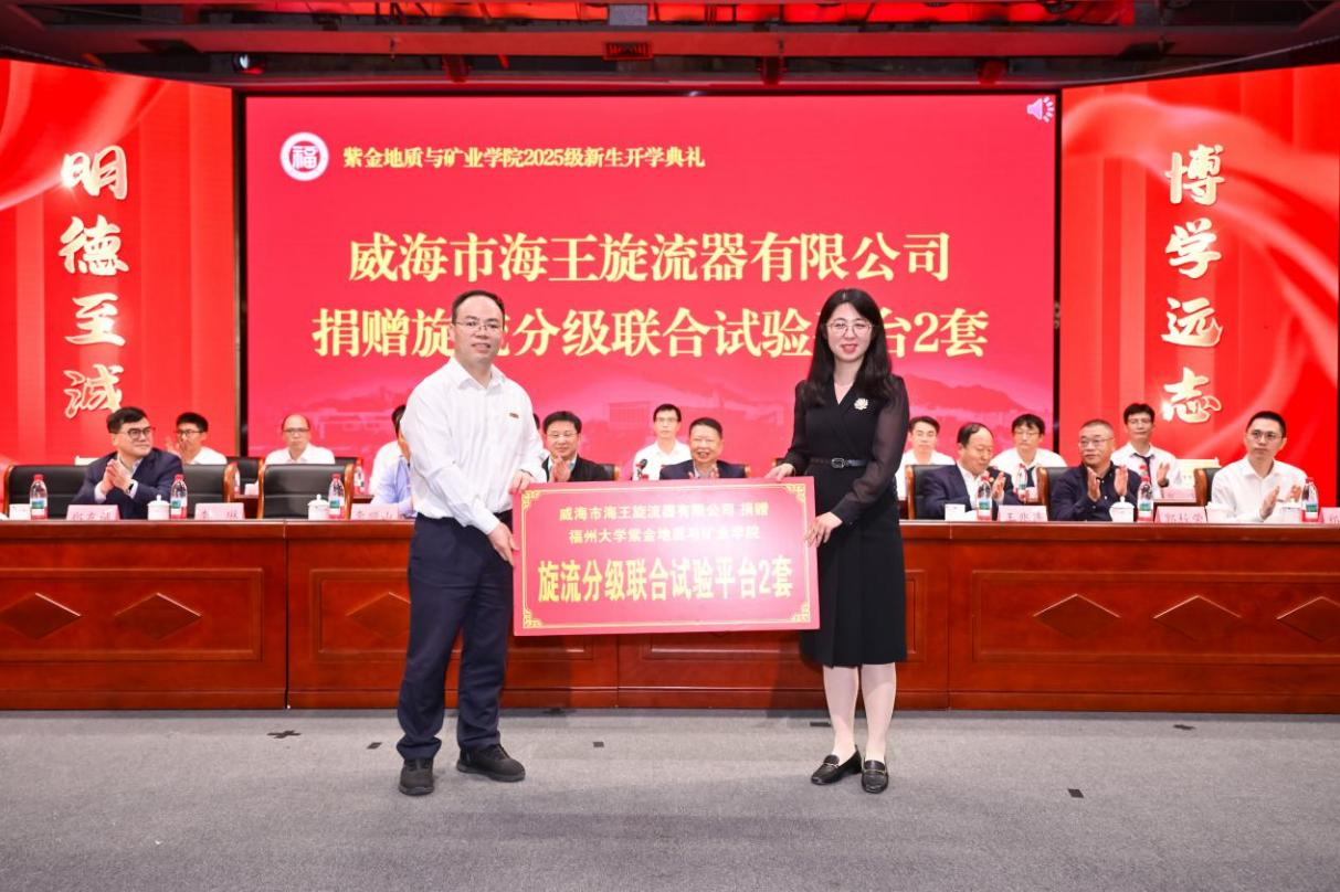 在随后的典礼上,一场凝聚着社会深情与产业厚望的捐赠与颁奖仪式庄严举行。美卓集团、山东华特磁电、南昌矿机、浙江艾领创、威海海王等多家行业领军企业慷慨捐资奖教奖学,更捐赠了一批代表行业前沿的先进科研设备,以实实在在的“硬核”力量,为学院育人事业与科技创新注入强劲动能。