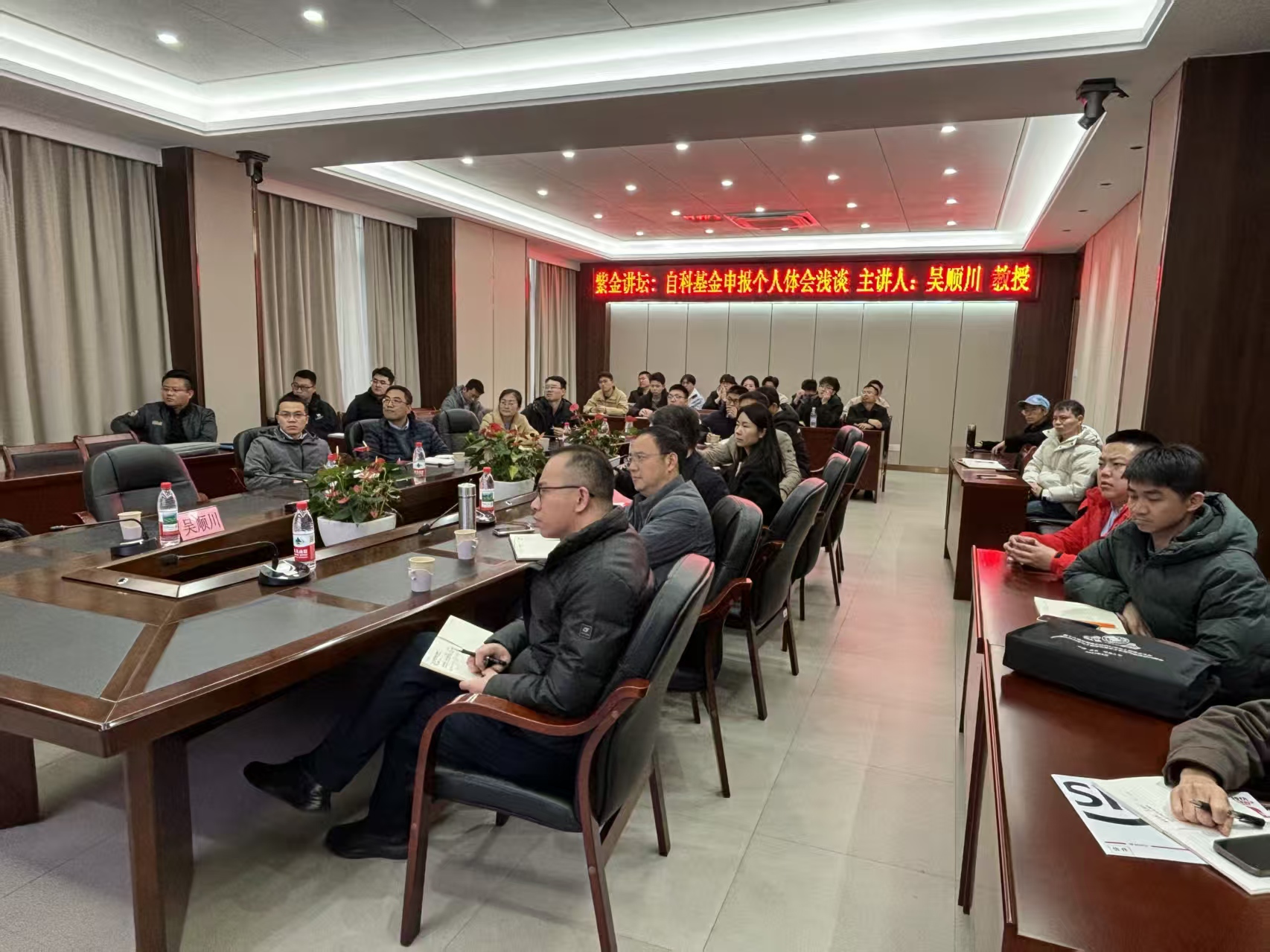 胡建华副院长在总结讲话中对吴顺川教授的精彩分享表示感谢。希望全体科研人员以工作高标准、平时多学习、同行多交流为准则,立足学科特色,聚焦核心难题,精心打磨申报材料,力争在2026年度国家自然科学基金申报中再创佳绩,为学院科研事业发展添砖加瓦。