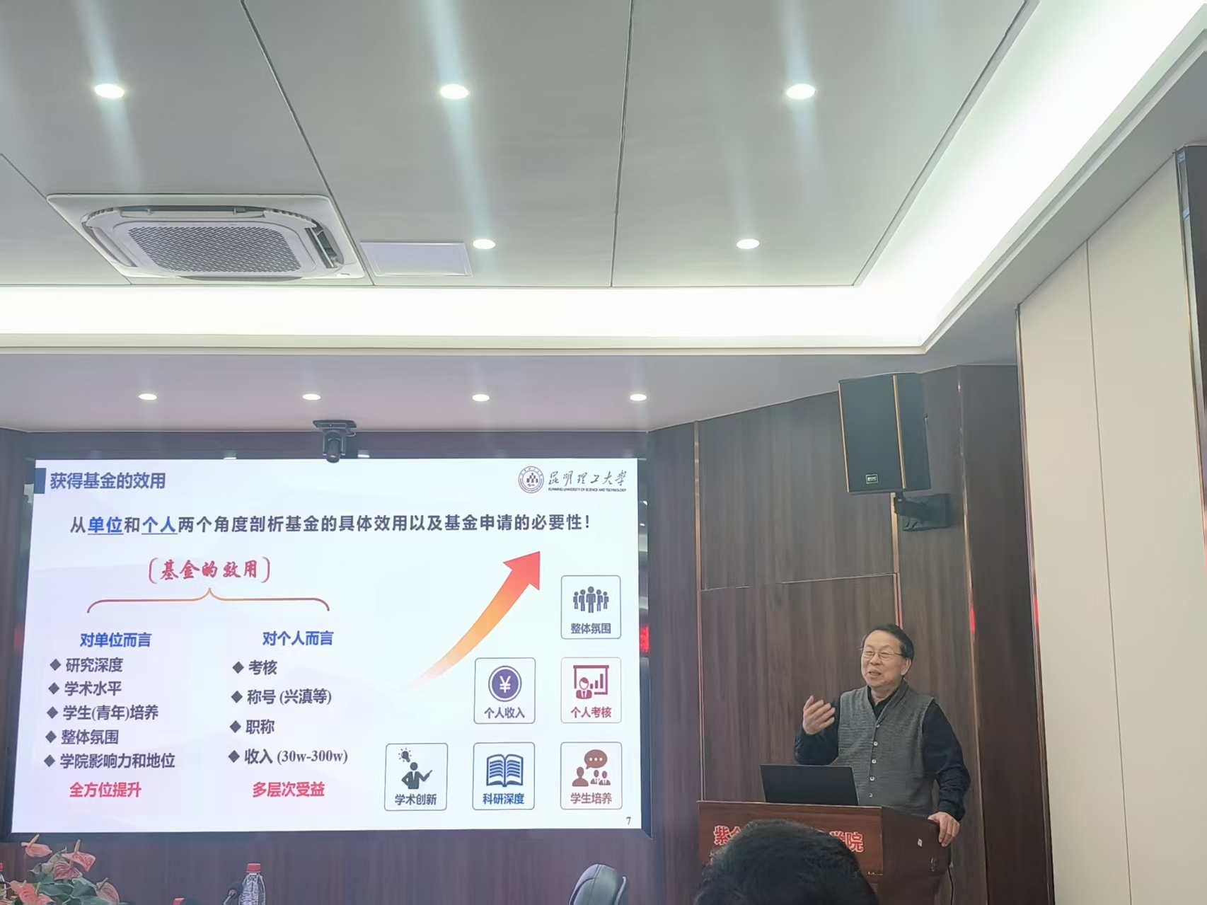 2026年1月23日,为助力学院教师高效备战2026年度国家自然科学基金申报,昆明理工大学国资学院院长“长江学者”特聘教授吴顺川教授应邀到访学院,开展学术报告与交流指导活动,深度解析基金申报核心要点,助力学院基金的高质量申报。