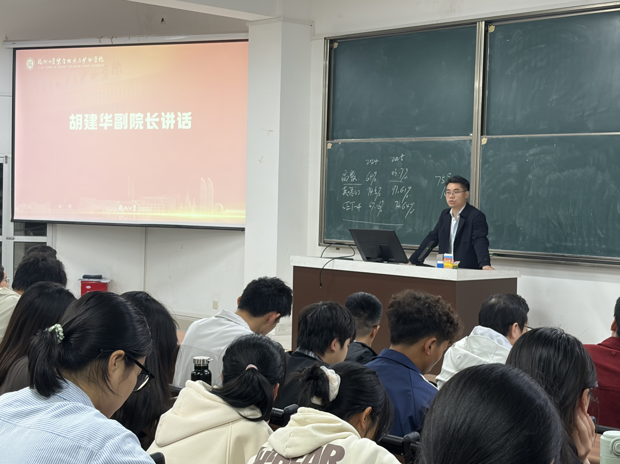副院长胡建华充分肯定了同学们上学期的表现,并在寄语中以“自信、自强、自立”三个关键词对同学们提出殷切期望。他指出,“自信”源于对自身潜力的认知和对专业前景的认同,要相信通过努力可以取得优异成绩;“自强”意味着要在遇到困难时不退缩、不躺平,主动寻求突破;“自立”则要求同学们逐渐摆脱被动依赖,学会独立思考、自主学习、自我管理。希望大家接续奋斗,奔赴美好前程,谋划光明未来。