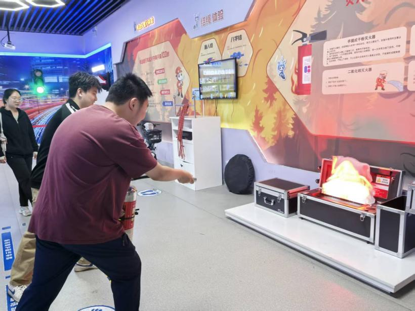 在展馆理论科普区域,讲解员围绕总体国家安全观核心内涵进行细致讲解,结合展板内容科普国家安全相关知识,结合校园实际普及各类安全常识,引导同学们树立安全防范意识,牢记青年学子的安全使命。随后同学们依次参与各项实操体验活动,在结绳教学环节认真学习逃生绳结打法,掌握应急自救技能;在消防实操区域,大家学习灭火器使用规范,上手完成模拟灭火演练,将安全理论转化为实战能力。活动全程同学们秩序井然、参与热情高涨,充分展现了良好的精神风貌,大家纷纷表示此次研学内容充实直观,不仅深化了总体国家安全观认识,更熟练掌握了消防、逃生、自救等实用安全技能。