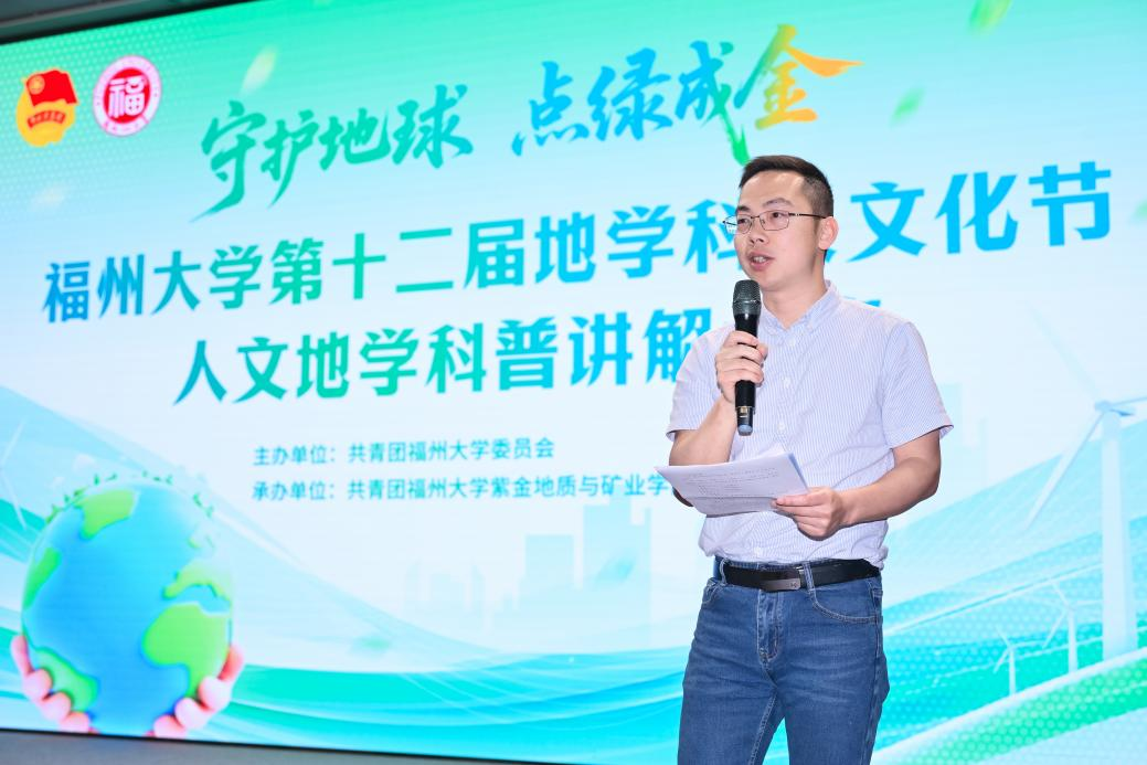4月18日晚,福州大学第十二届地学科技文化节——人文地学科普讲解大赛决赛在旗山校区明德厅顺利举行。福建省厦门地质大队、厦门思明区地学科普基地负责人,曾获全国科普讲解比赛三等奖的杨文麟教授,福州大学校团委书记叶阁泽老师,建筑与城乡规划学院团委副书记王颖慧老师,紫金学院党委副书记张志雄老师,福州大学副教授、长期从事地学科普工作的李晓敏老师,福州大学地矿博物馆常务副馆长、福建省五一劳动奖章获得者林木森老师,紫金学院研究生辅导员张彬老师担任评委。
