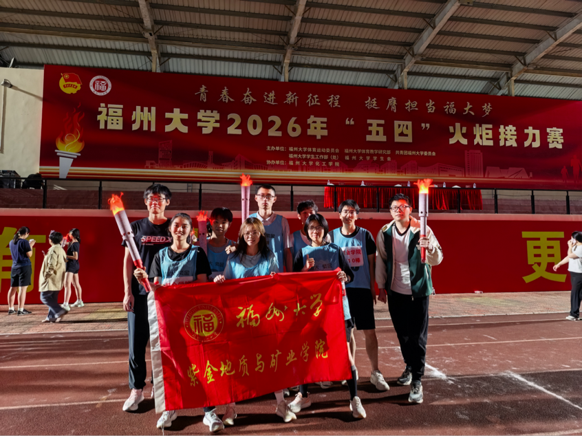 “青春奋进新征程,挺膺担当福大梦。”为深入学习贯彻习近平总书记关于体育工作的重要论述,传承和弘扬“五四”精神,激励广大矿院学子以昂扬姿态投身新征程,4月26日晚,福州大学2026年“五四”火炬接力赛在旗山校区第一田径场隆重举行。我院接力队10名队员奋勇争先,在赛道上展现矿院青年的热血与担当。